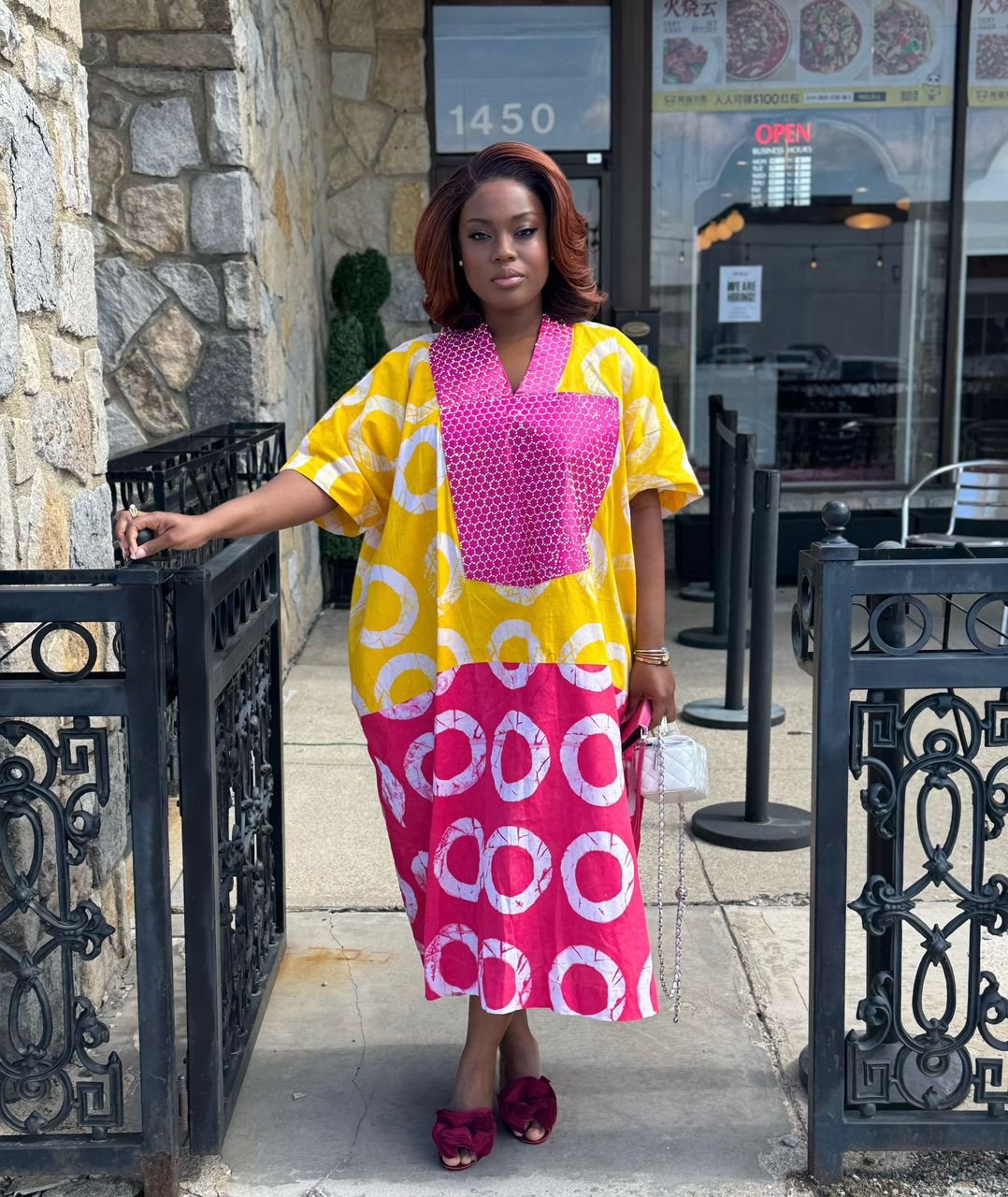 A perfect cotton boubou to the office on Friday, to brunch on Saturday and to worship on Sunday! Complement with low-heeled mules and watch as it catches the breeze!
